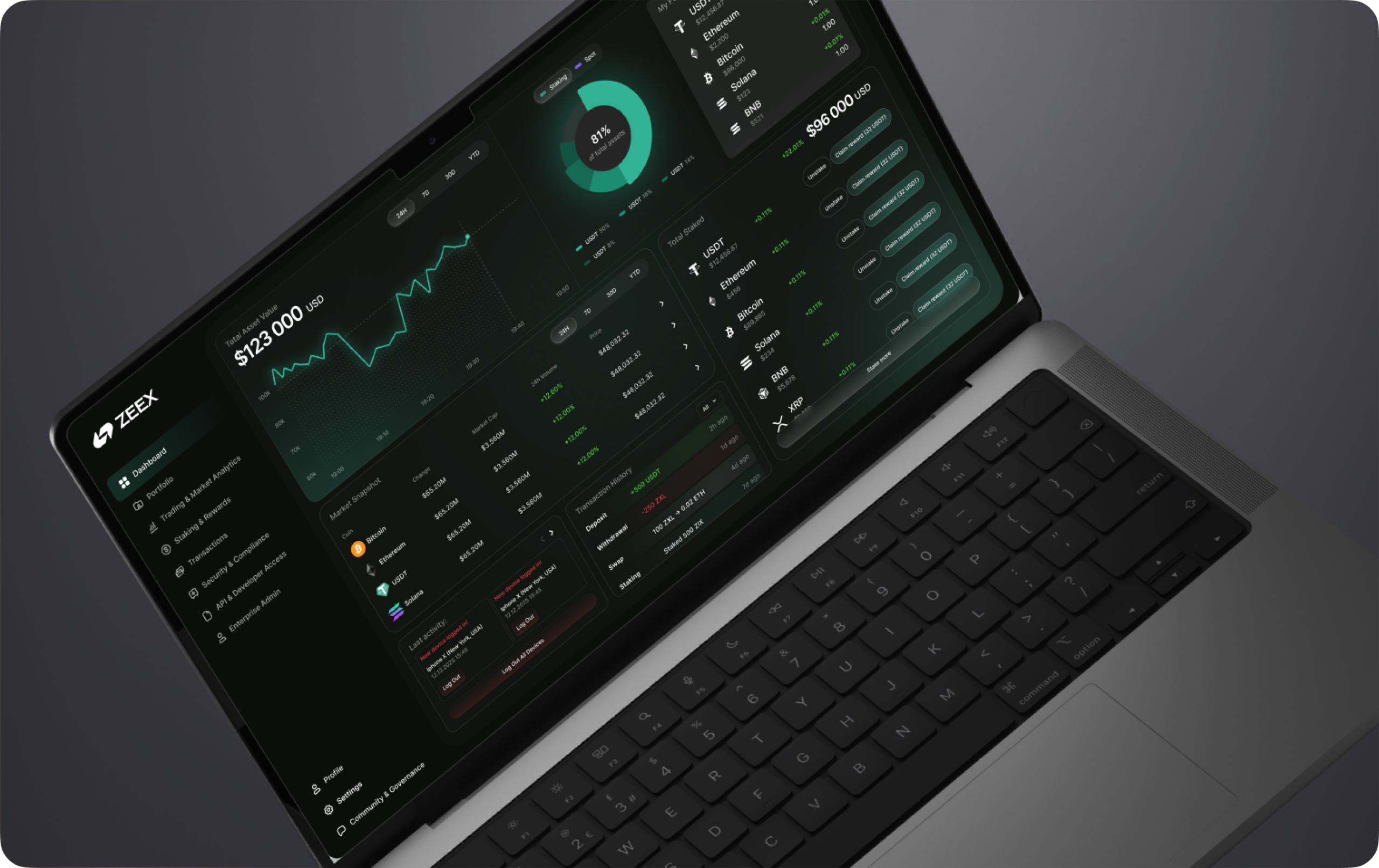 The resulting design positions Zeex as a cutting-edge, data-driven leader in cryptocurrency trading and asset management. By seamlessly merging innovative aesthetics with functional efficiency, the platform enhances user engagement, builds trust, and elevates the overall trading experience. With a focus on intuitive navigation and visually engaging analytics, the redesigned dashboard ensures effortless access to market insights, portfolio management, and transaction history. This transformation not only strengthens Zeex’s digital presence but also aligns with its mission to empower traders with real-time data, transparency, and a sleek, modern interface.
